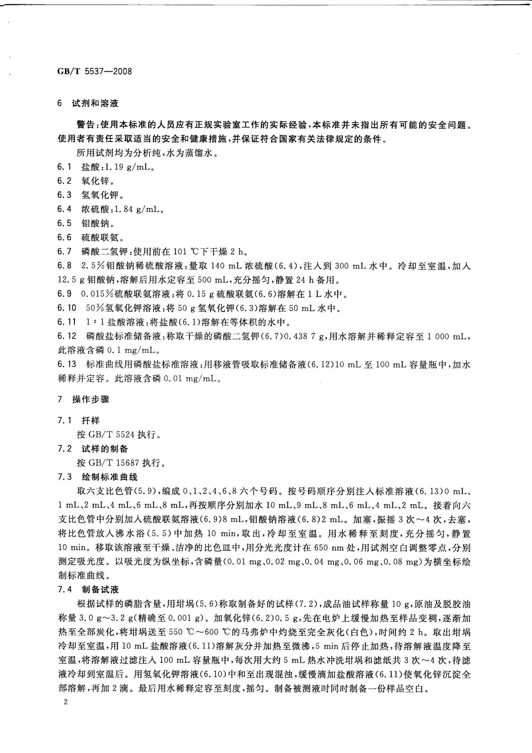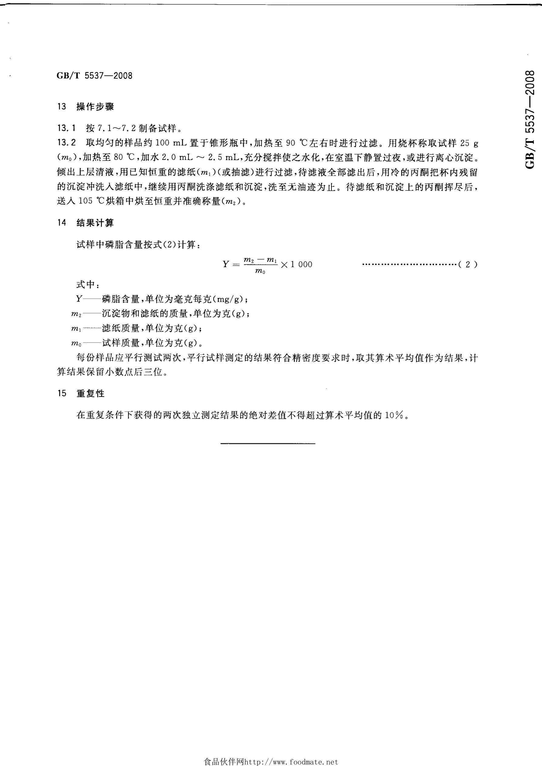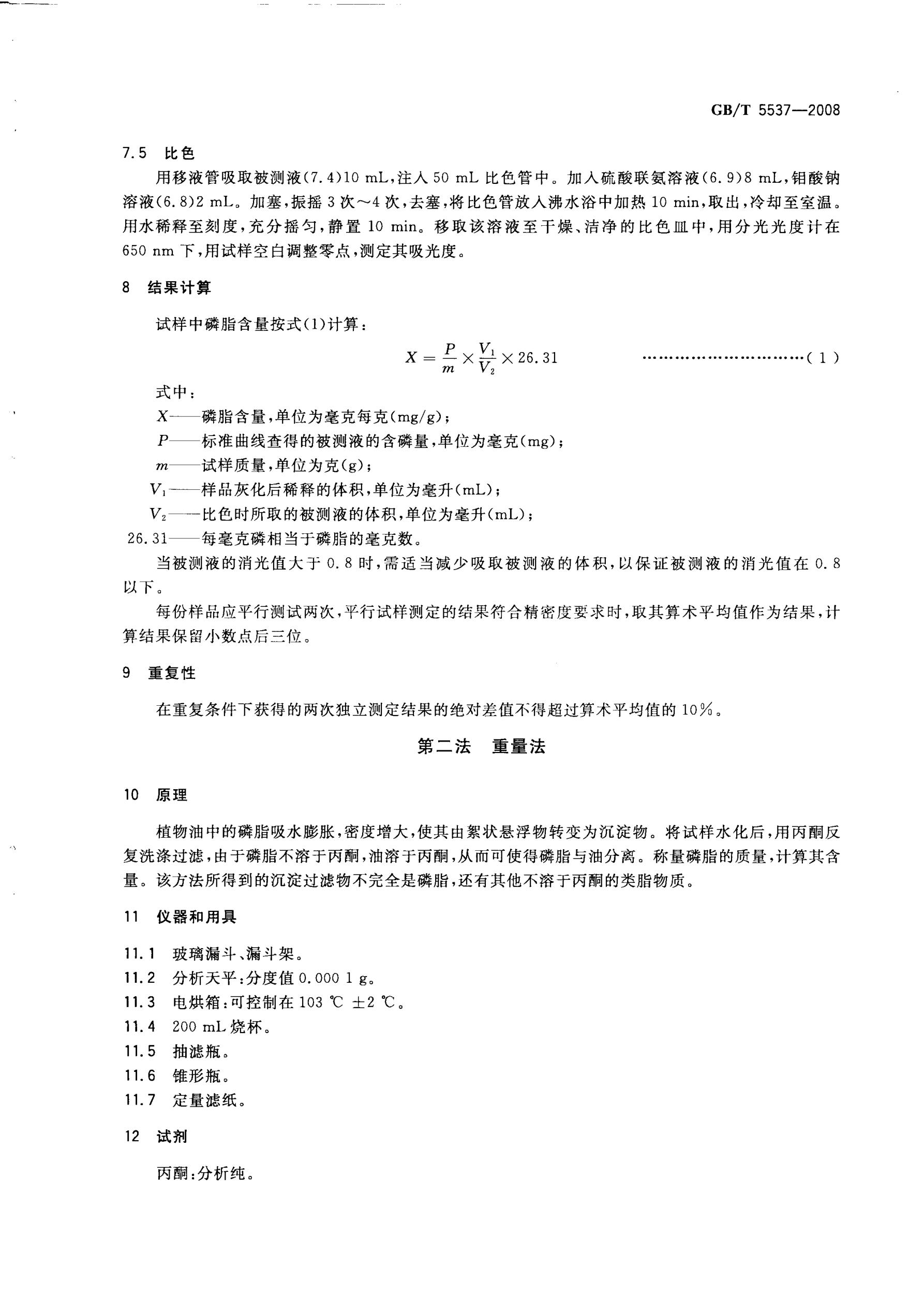 磷脂含量的測定 GB/T5537-2008