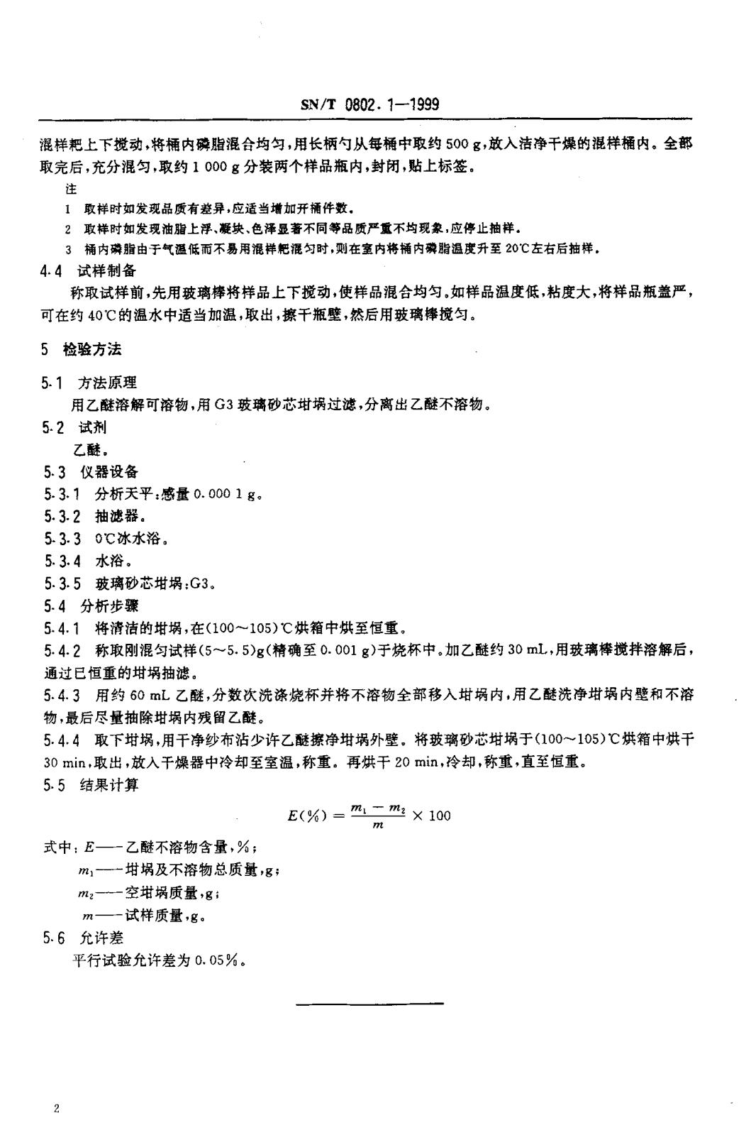 進出口磷脂乙醚不容物檢測方法 SN/T 0802.1-1999
