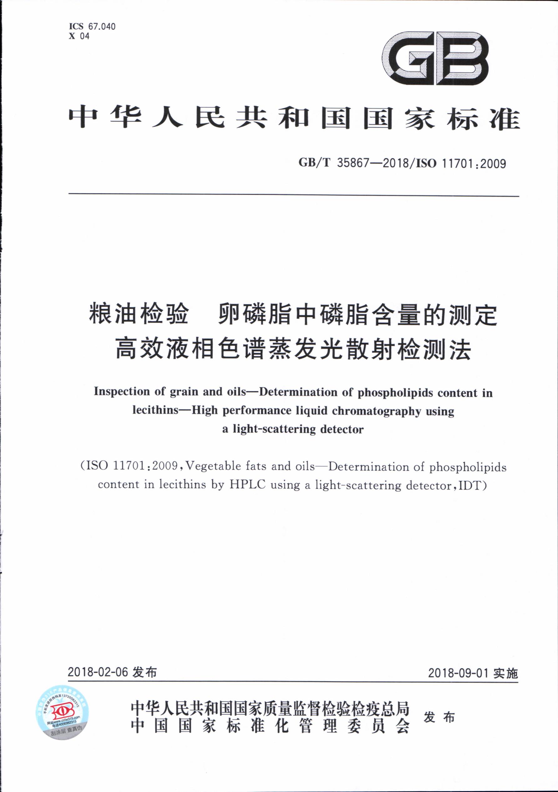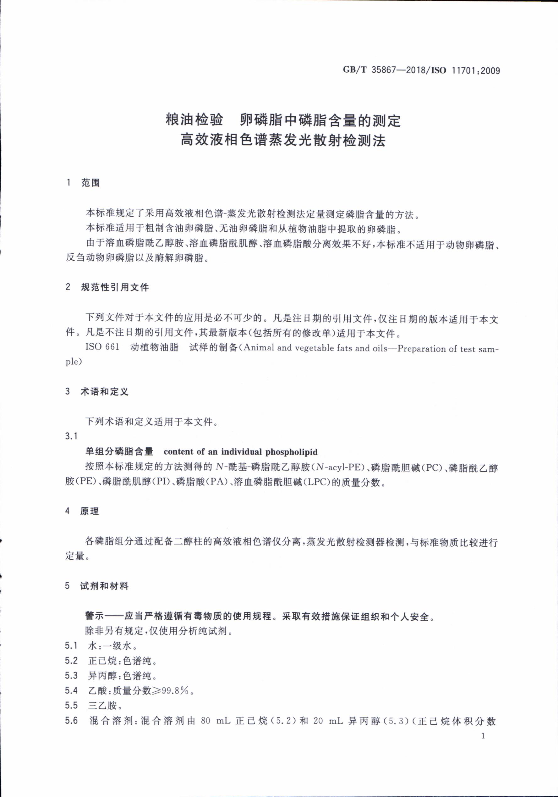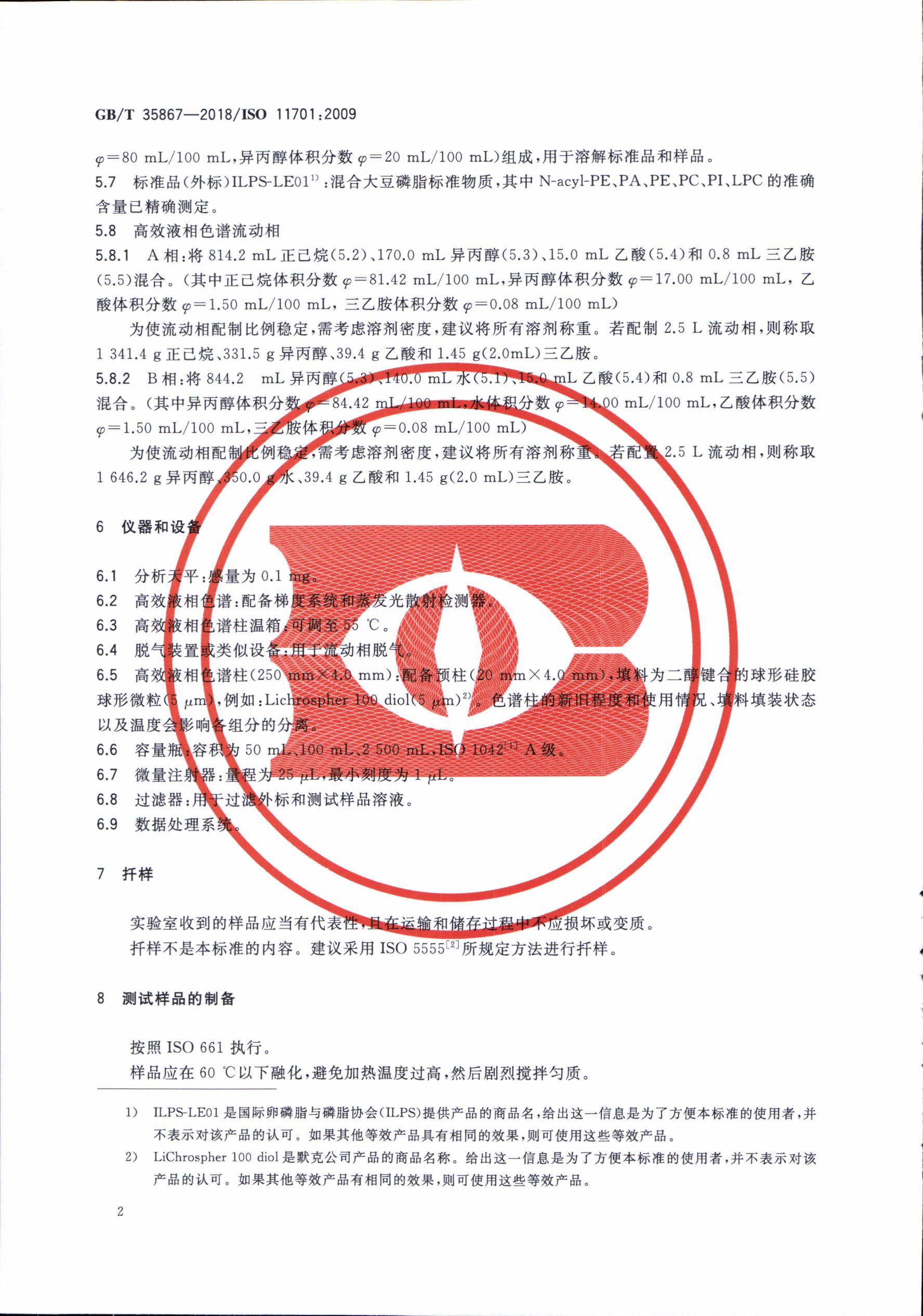 卵磷脂中磷脂含量的測定GB/T 35867-2018